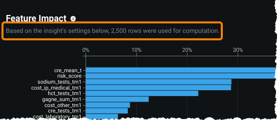 Feature Impact is calculated using a sample of the model's training data. Because sample size can affect results, you may want to recompute the values on a larger sample size.