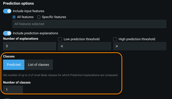 | Number of Prediction Explanations | 3 | Set any number of explanations between 1 and 10. |