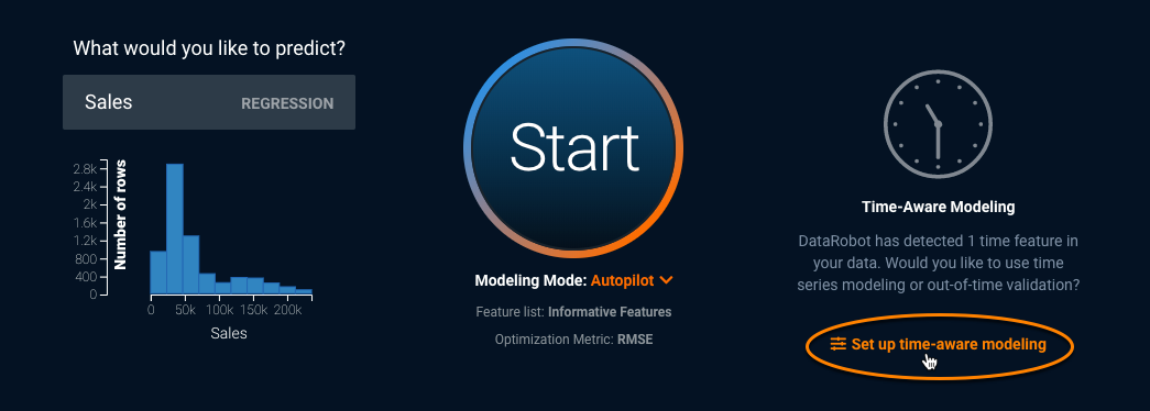 Date/time partitioning allows you to order partitions based on time and is part of DataRobot's time-aware modeling capabilities. See a more complete description of date/time partitioning in the Out-of-Time Validation (OTV) or time series sections.