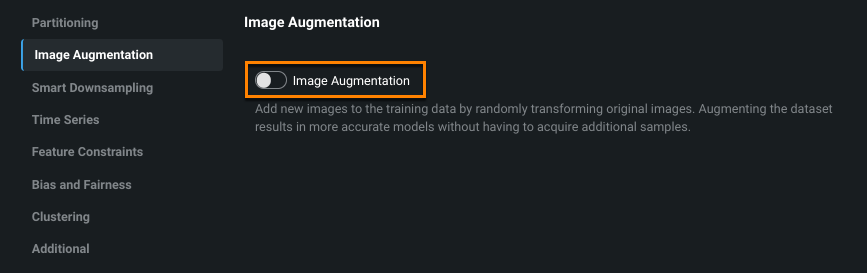 After selecting your target, toggle on the Image Augmentation tab in Advanced options.