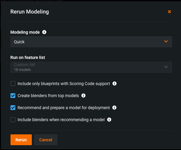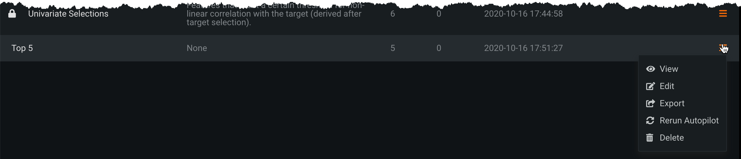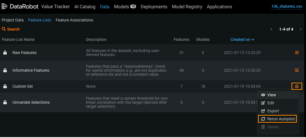 After you build your models, you rerun Autopilot from the Feature Lists tab. This is helpful if you customized a feature list after running Autopilot and want to generate additional models.