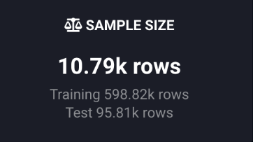 - Sample Size (2): The sample size, as always, indicates the percentage of the training dataset that was used to build the model. This example shows a 64% model that was retrained to 50%.