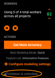 Click Unlock project Holdout for all models on the rightmost panel.