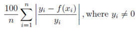 - Mean Absolute Percentage Error will be undefined when the actual value is zero. Eureqa’s calculation excludes rows for which the actual value is zero.