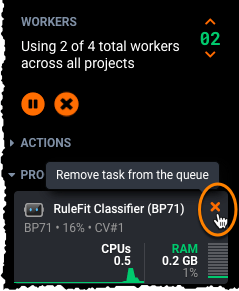 To stop the Worker Queue, click the "X" symbol at the top of the queue.