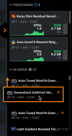 To prioritize training specific models, you can drag-and-drop queued models to a new position.