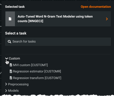 - The task is compatible with DataRobot requirements and can be used to build a blueprint.