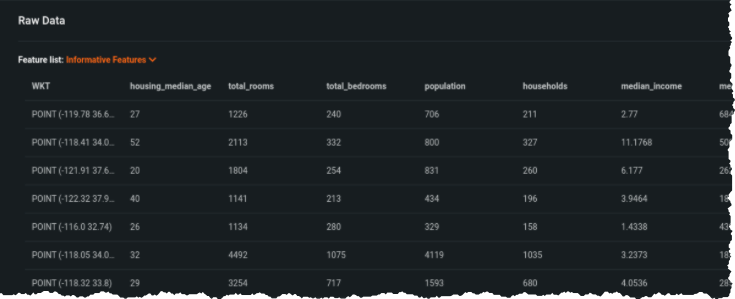 Well Known Text (WKT) is a markup language described in the Open Geospatial Consortium’s (OGC) Simple Feature Access specification. WKT is a versatile representation of vector geospatial geometries and can be utilized in any of DataRobot AutoML’s existing file types as a feature describing the geometry associated with a row. See the “WKT” column in the figure below.