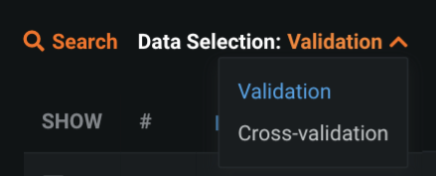 Select the dataset partition—validation, cross validation, or holdout (if unlocked)—that the metrics and curves in the chart and table are based on.