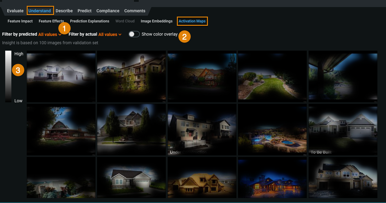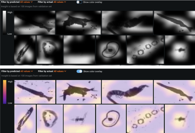 With Activation Maps, you can see which image areas the model is using when making predictions—which parts of the images are driving the algorithm prediction decision.