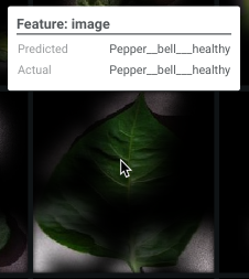 | Tomato Leaf Mold | Potato Blight | Any sample in which DataRobot predicted Tomato Leaf Mold but the actual class was potato blight |