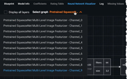 For blueprints that contain multiple neural networks, a Select graph dropdown becomes available, allowing you to display the associated visualization for that neural network.