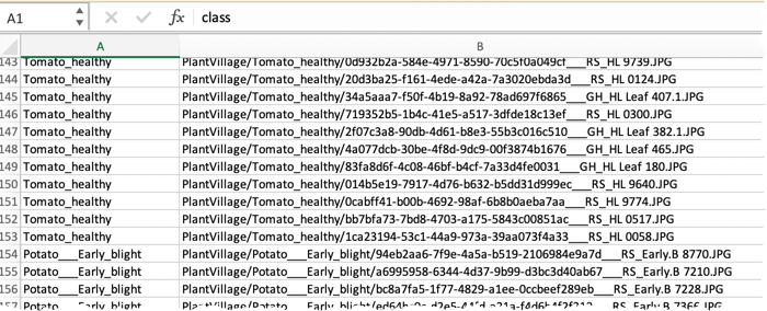 If you have multiple images for a row, you can create an individual column in the dataset for each. If your images are categorized for example the front, back, left, and right of a healthy tomato plant, best practice suggests creating one column for each category (one column for front images, one for back images, one for left images, and one for right). If there is not an image in each row of an added column, DataRobot treats it as a missing value.