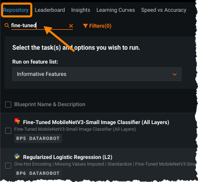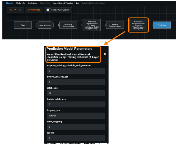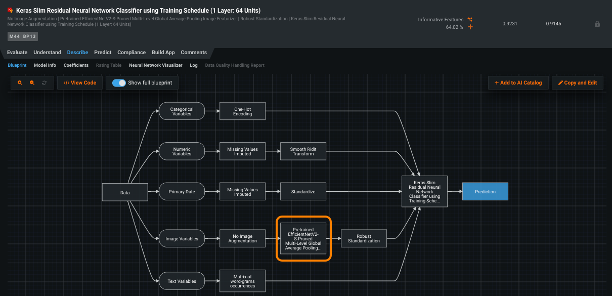 To explore improvements with other image featurizers, select the top model on the Leaderboard and view its blueprint, which shows the featurizer used.