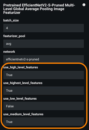 Featurizers are deep convolutional neural networks made up of sequential layers, each layer aggregating information from previous layers. The first layers capture low-level patterns made of a few pixels: points, edges, and corners. The next layers capture shapes and textures. The final layers capture objects. You can select the level of features you want to extract from the neural network model, tuning and optimizing results (although the more layers enabled, the longer the run time).