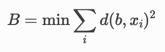 A barycenter is a time series that is derived from other series, with the explicit goal of minimizing the distance between itself and other series. A barycenter (B) is mathematically defined as the minimum sum of the squared distances (d) to a reference time series (b), when you are given a new time series dataset (x):