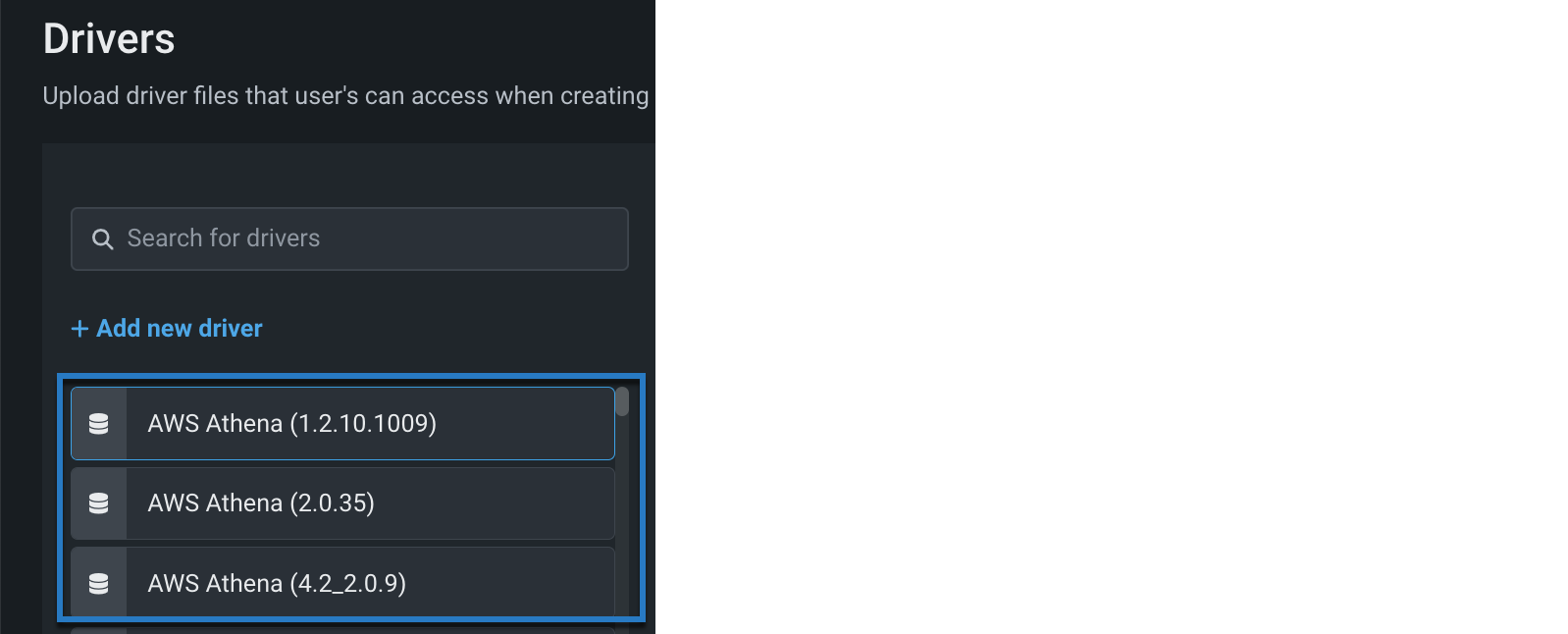 Required permission: Can manage JDBC database drivers