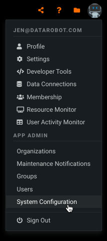 To minimize iteration time when configuring external LDAP and SMTP systems, DataRobot provides a configuration management interface to ensure compatible configuration options. Using the new System Configuration interface, configuration values related to LDAP and SMTP can be controlled dynamically without the need to reconfigure the application, saving time and making the process more user friendly. All changes made through the interface are also recorded in the audit logs for future reference.