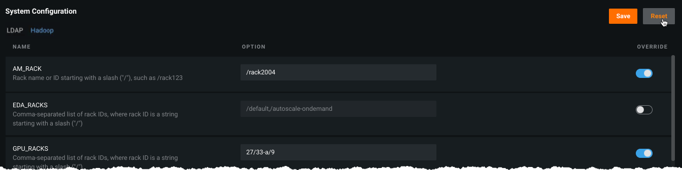 - for all configuration values for a given option (i.e., LDAP or SMTP), click Reset.