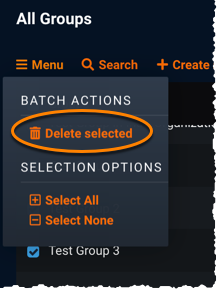 If you want to delete multiple groups—select the check boxes for those groups (or select the check box next to the Groups heading), click Menu, and then select Delete selected.