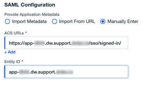 - Choose a configuration option to set up the Entity ID and IdP metadata.