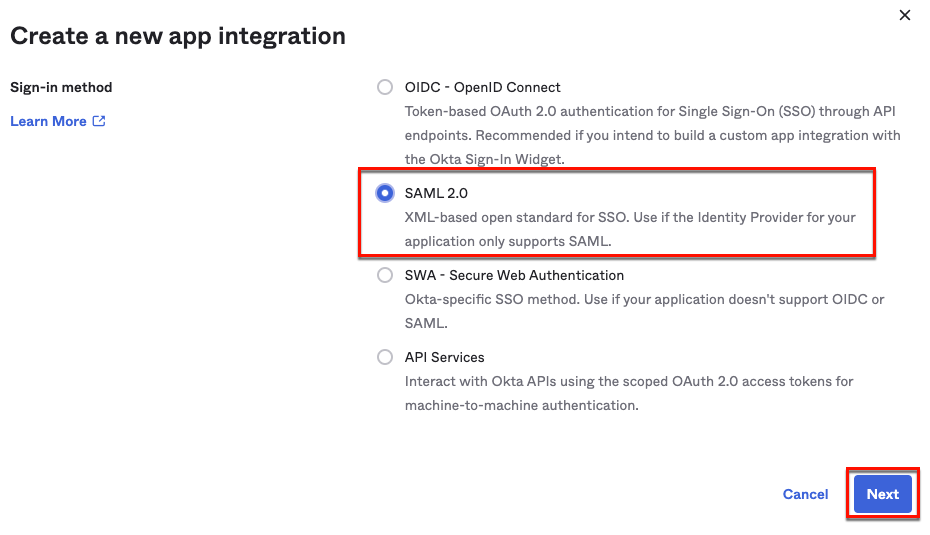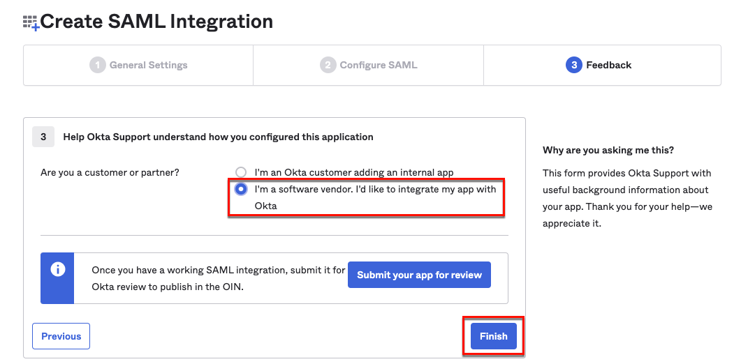 Make sure that the following required configuration is complete on the IdP side—this example uses Okta.