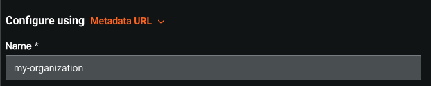 | Name | Specify a meaningful name for the IdP configuration (for example, the organization name). This name will be used in the service provider details URL fields. Enter the name in lowercase, with no spaces. The value entered in this field updates the values provided in the Service provider details section. |