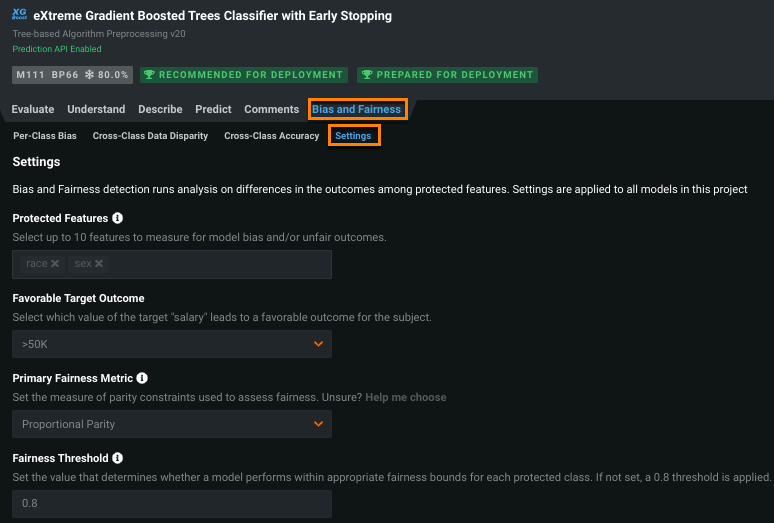 For details, see the Bias and Fairness documentation.