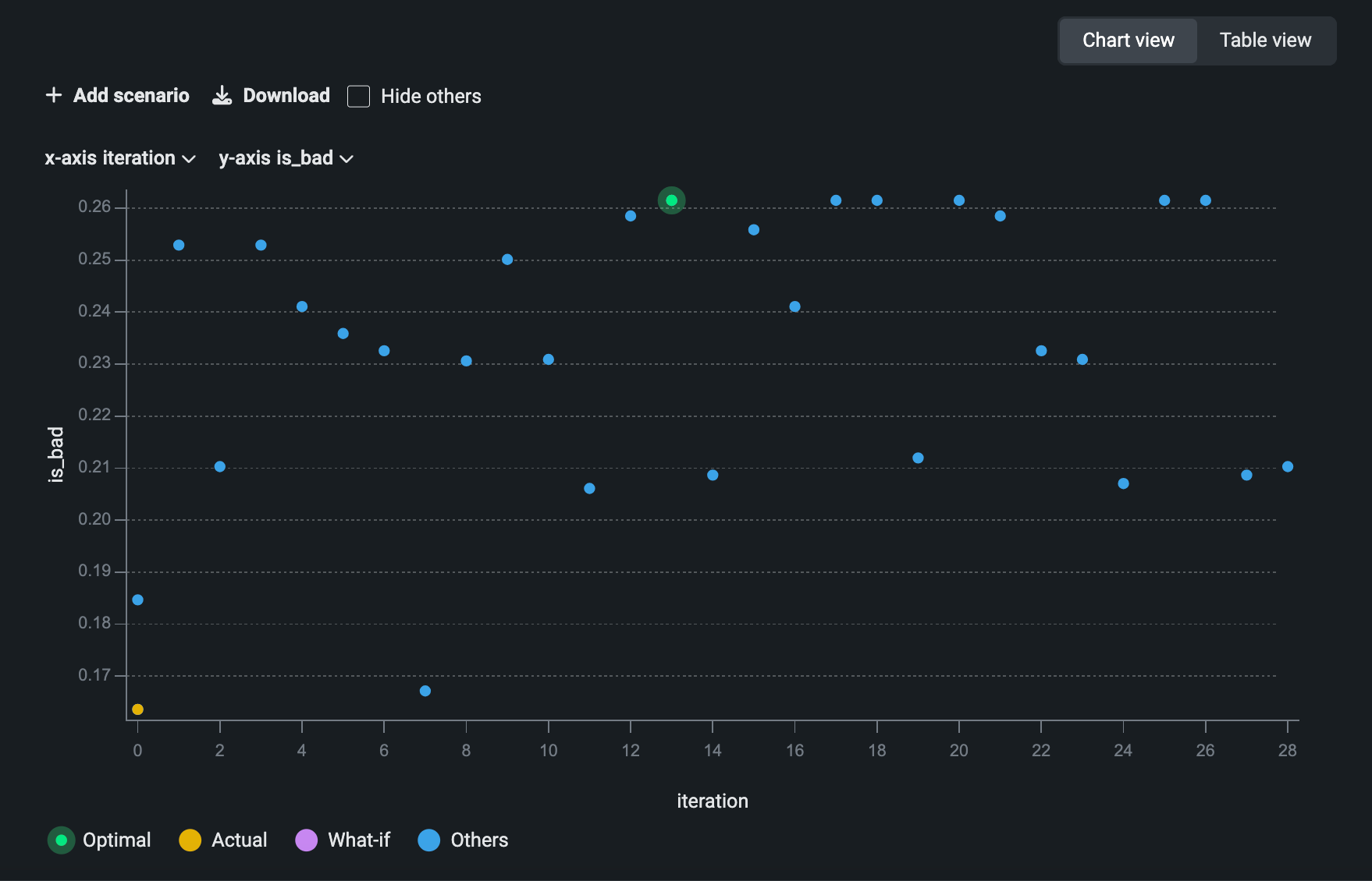 In the new Workbench app experience, you can now interact with prediction results using the what-if and optimizer widget, which provides both a scenario comparison and optimizer tool.