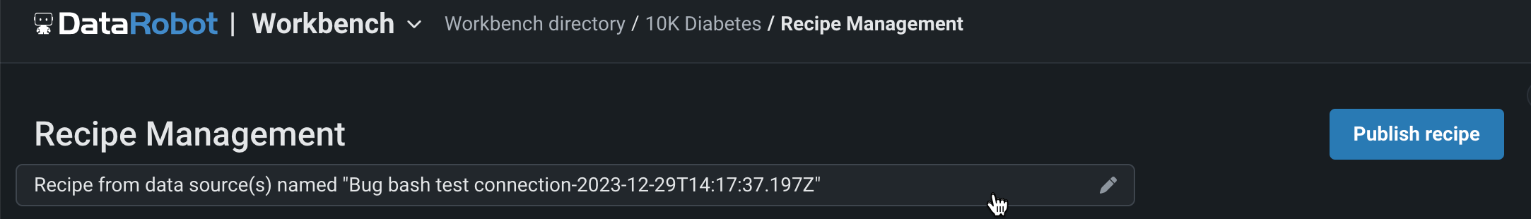 Now available for preview, when you wrangle a dataset in your Use Case, including re-wrangling the same dataset, DataRobot creates and saves a copy of the recipe in the Data tab regardless of whether or not you add operations to it. Then, each time you modify the recipe, your changes are automatically saved. Additionally, you can open saved recipes to continue making changes.