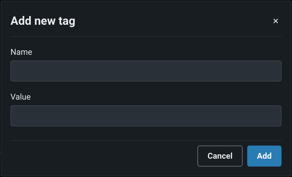 In the Tags section, click + Add new and enter a Name and a Value for each key-value pair you want to tag the deployment with. Deployment tags can help you categorize and search for deployments in the dashboard.