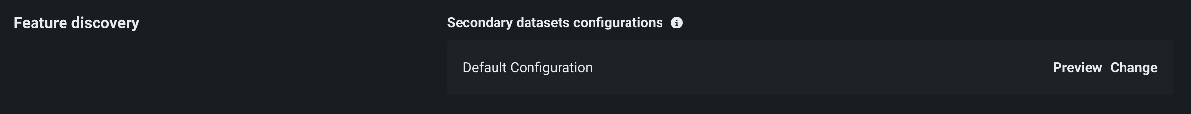 | Secondary datasets configurations | Previews the dataset configuration or provides an option to change it. By default, DataRobot makes predictions using the secondary datasets configuration defined when starting the project. Click Change to select an alternative configuration before uploading a new primary dataset. |