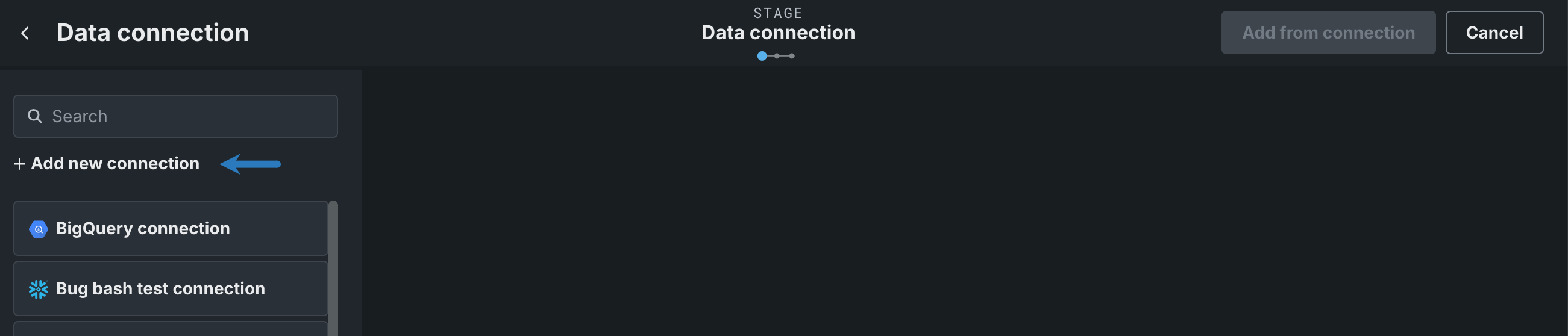 In the left panel, select a data connection that holds that data you want to add and click Add from connection. If the connection is authorized with OAuth, you may be prompted to sign in.