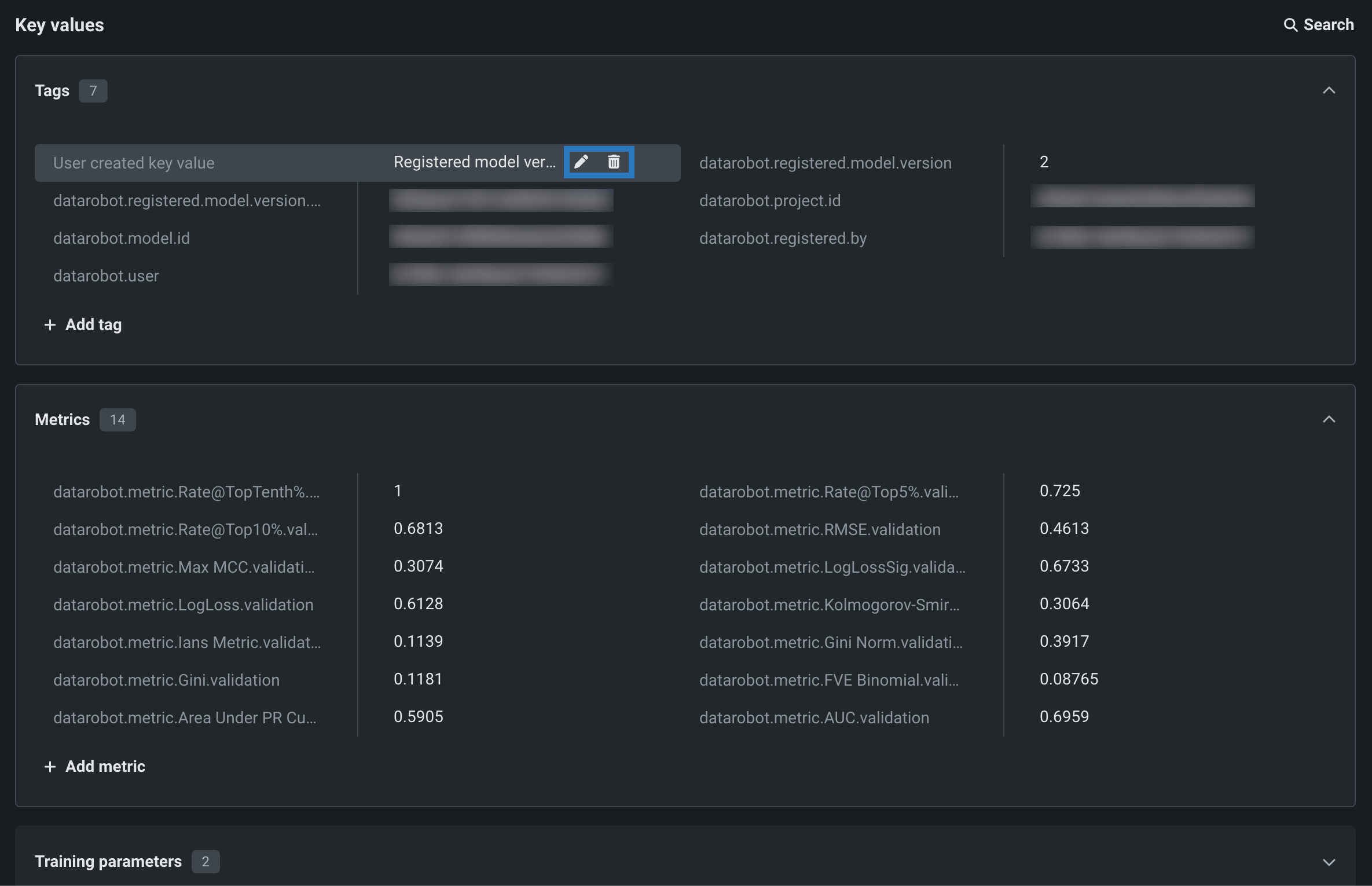 After you register a model, you can add key values and edit existing (user-created) key values from the Registry. For more information on key values, see the documentation.