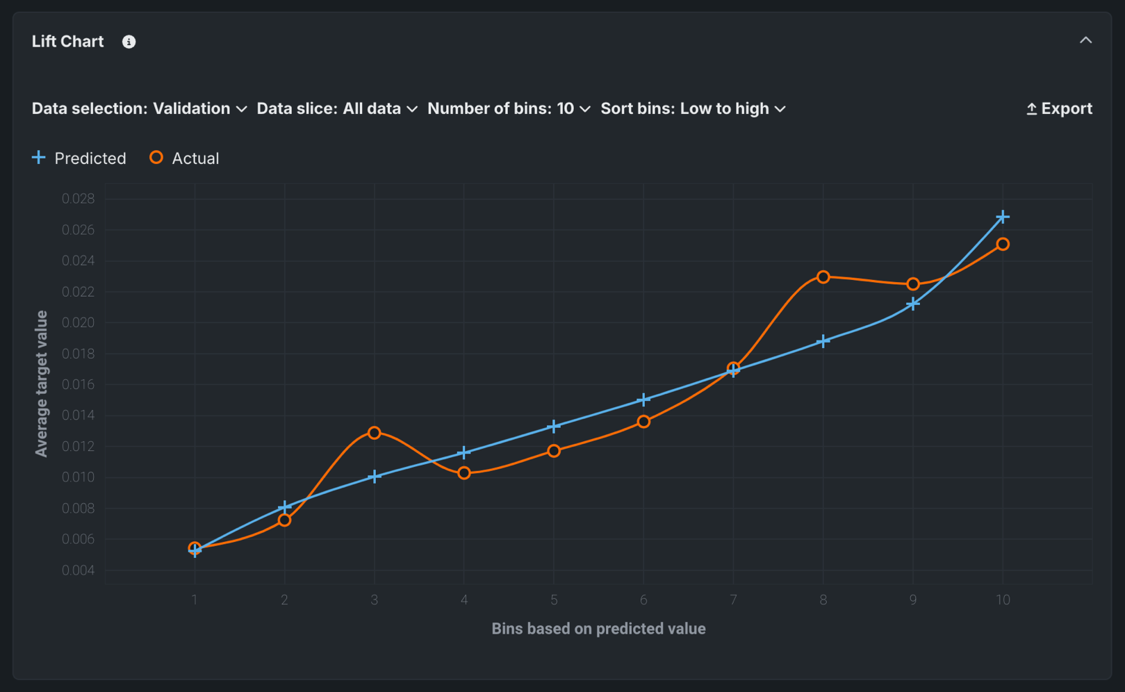 | Lift Chart | Depicts how well a model segments the target population and how capable it is of predicting the target. | All | ✔ |