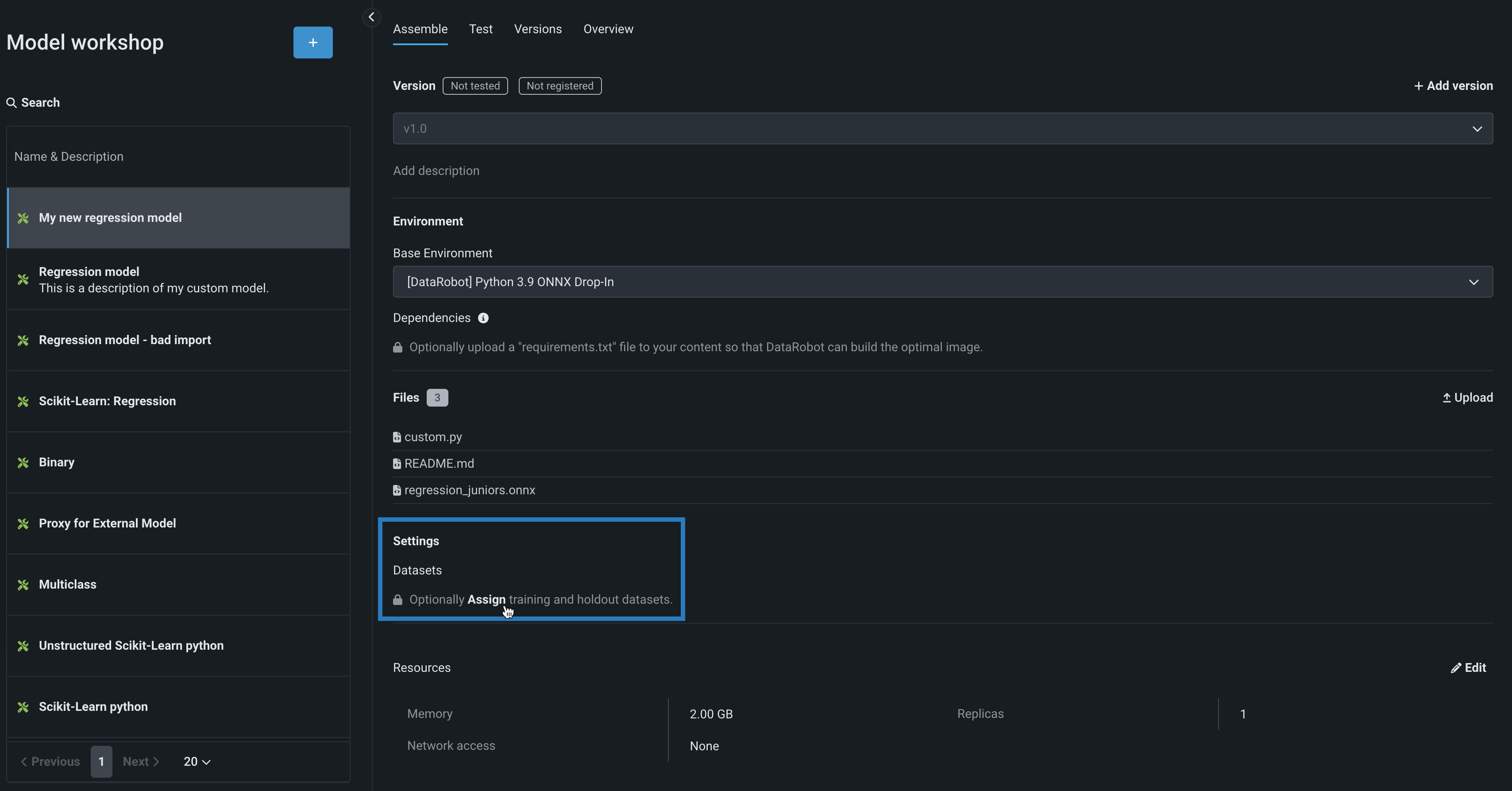 Assign custom model datasets¶