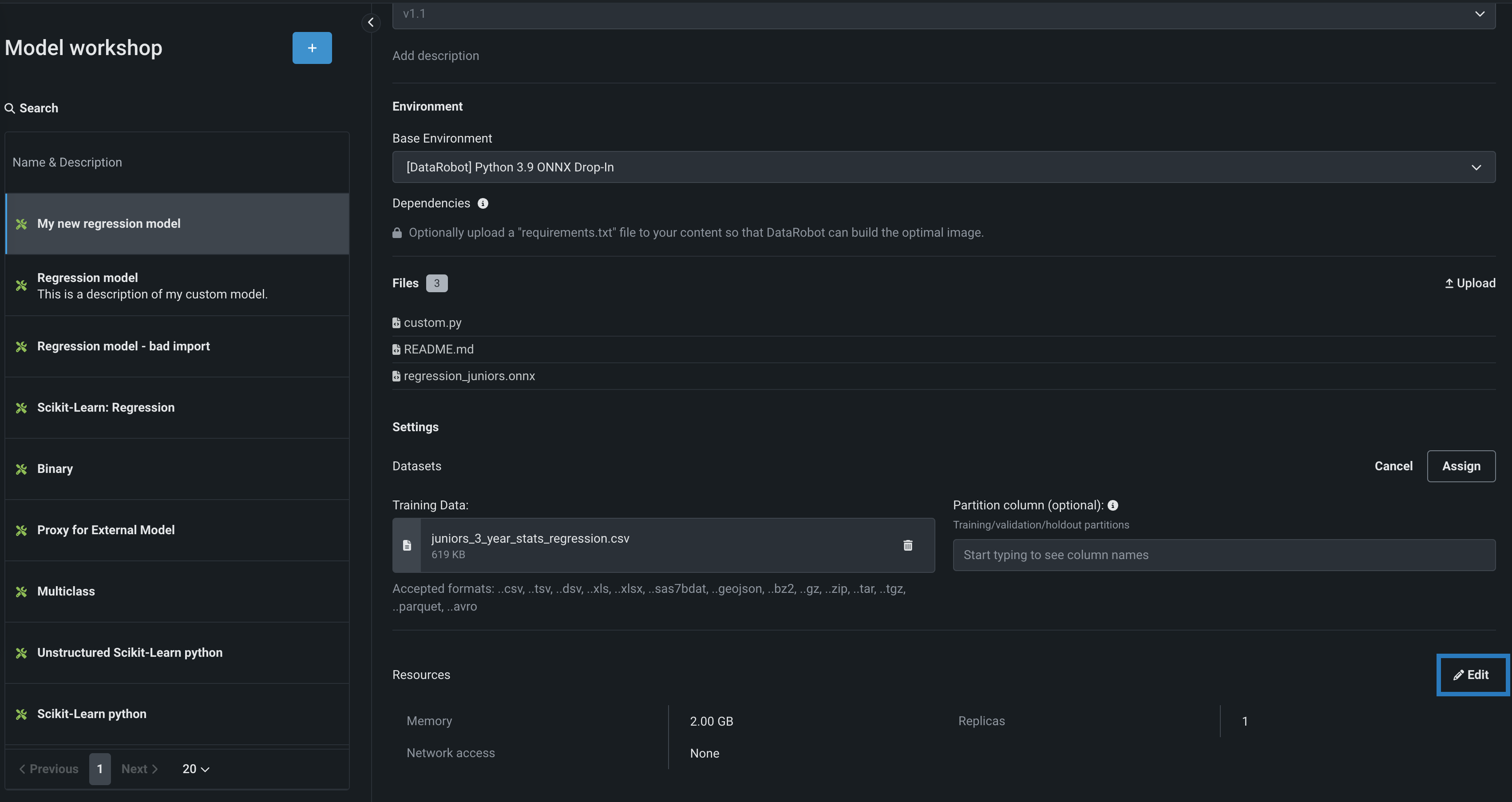 requirements.txtfile in the Files section, allowing DataRobot to build the optimal image. -