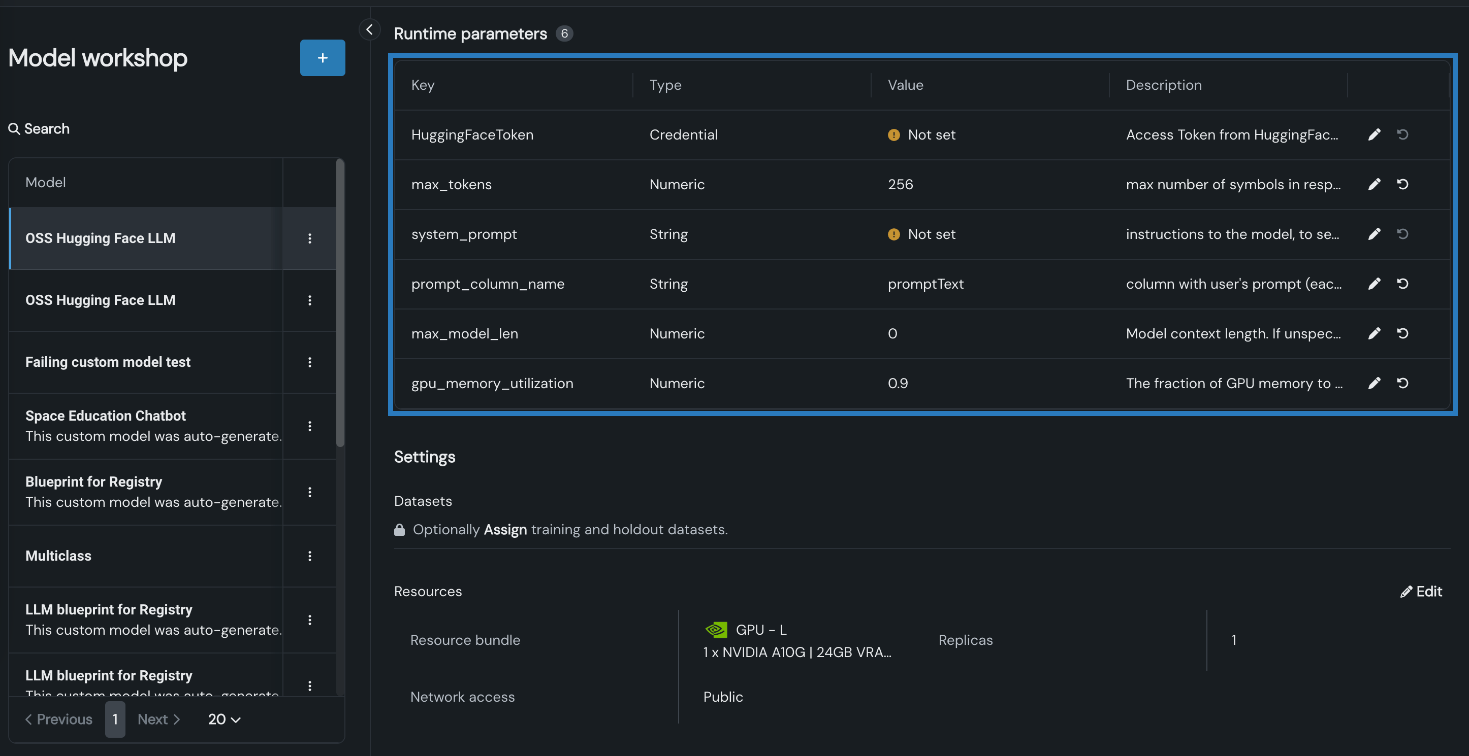 Use the model workshop to create and deploy popular open source LLMs from the Hugging Face Hub, securing your AI apps with enterprise-grade GenAI observability and governance in DataRobot. The new [GenAI] vLLM Inference Server execution environment and vLLM Inference Server Text Generation Template provide out-the-box integration with the GenAI monitoring capabilities and Bolt-on Governance API provided by DataRobot.