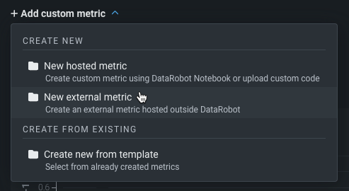 Click Add new custom metric and select Add an external custom metric from the dropdown.