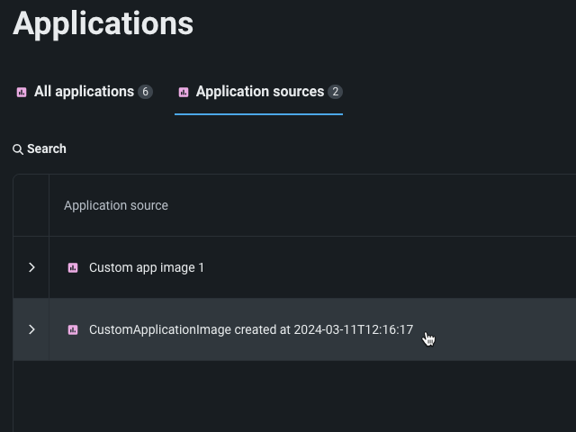 In the Registry, click the Applications > Application sources tab, and then select the application source from which you want to build a custom app.