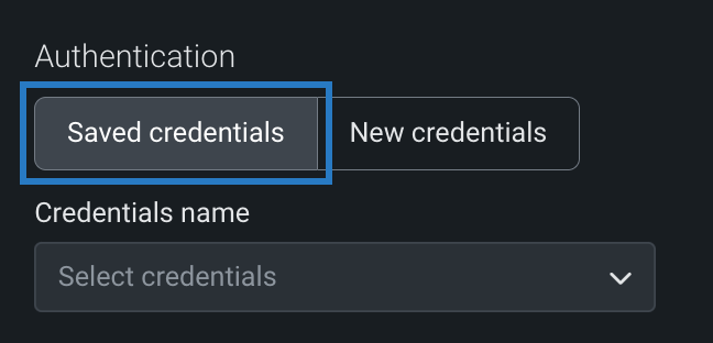 If you previously saved credentials for the selected data source, click Saved credentials and select the appropriate credentials from the dropdown.