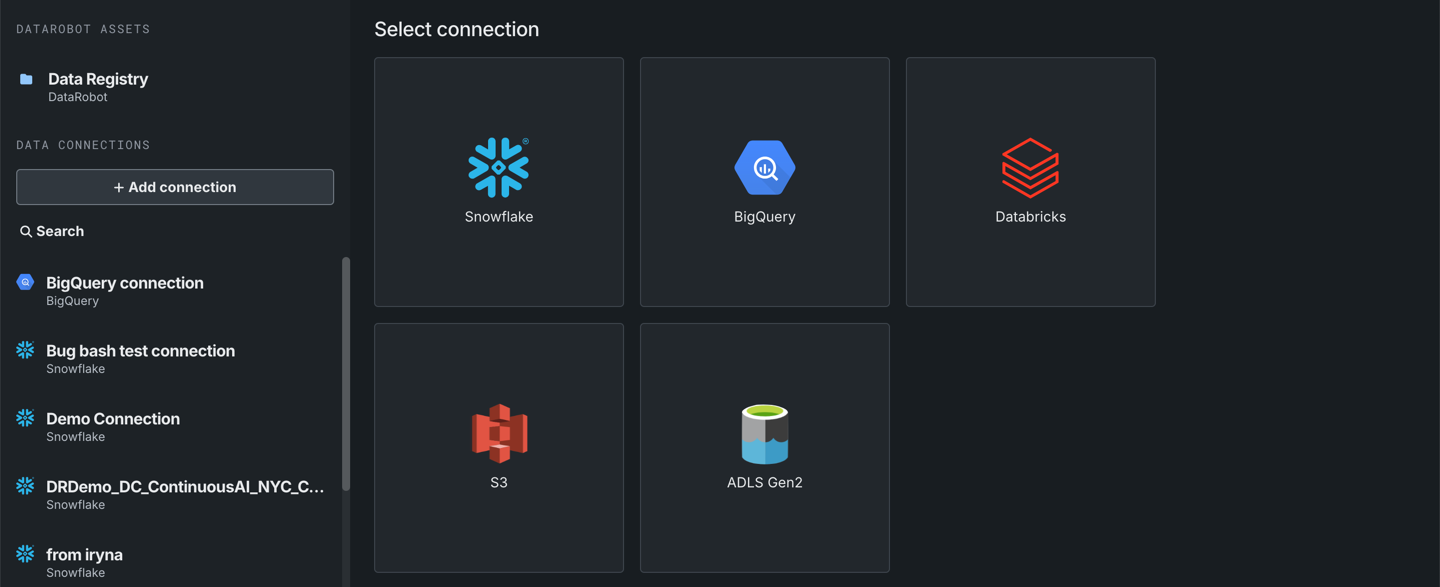 In Workbench, you can easily configure and reuse secure connections to predefined data sources. Not only does this allow you to interactively browse, preview, and profile your data, it also gives you access to DataRobot's integrated data preparation capabilities.