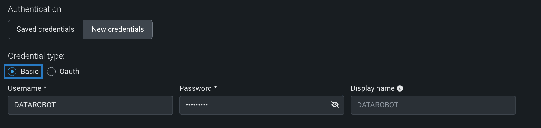 Click New Credentials and select an authentication method—in this case, either Basic or OAuth.