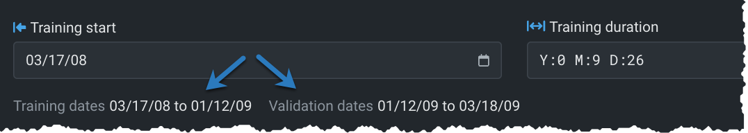 - Without a gap, set the training start, training end, validation start, and validation end.