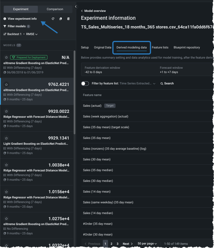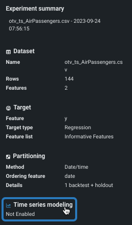Select Time series modeling in the Experiment summary panel.