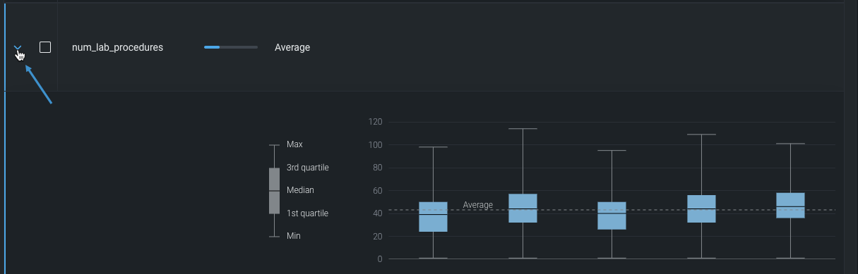 Expand a row to see additional features or statistics, depending on feature type, within a cluster.