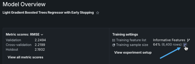 Once the Leaderboard is populated, you can retrain any existing model, which will create a new Leaderboard model. To retrain a specific model, select it from the Leaderboard. Then, change a model characteristic by clicking the change icon (