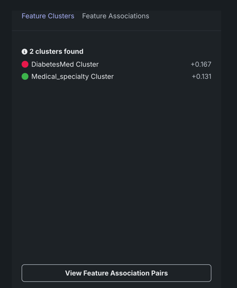- Displays a list of all identified clusters (Feature Clusters tab) and their average metric score.