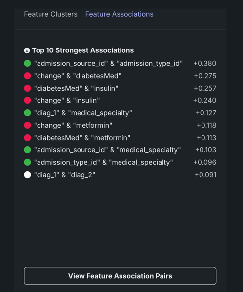 Displays the Feature Associations insight to help you track and visualize associations within your data.