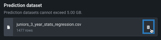 If you select the wrong dataset, you can remove your selection from the Prediction source setting by clicking the delete icon ().